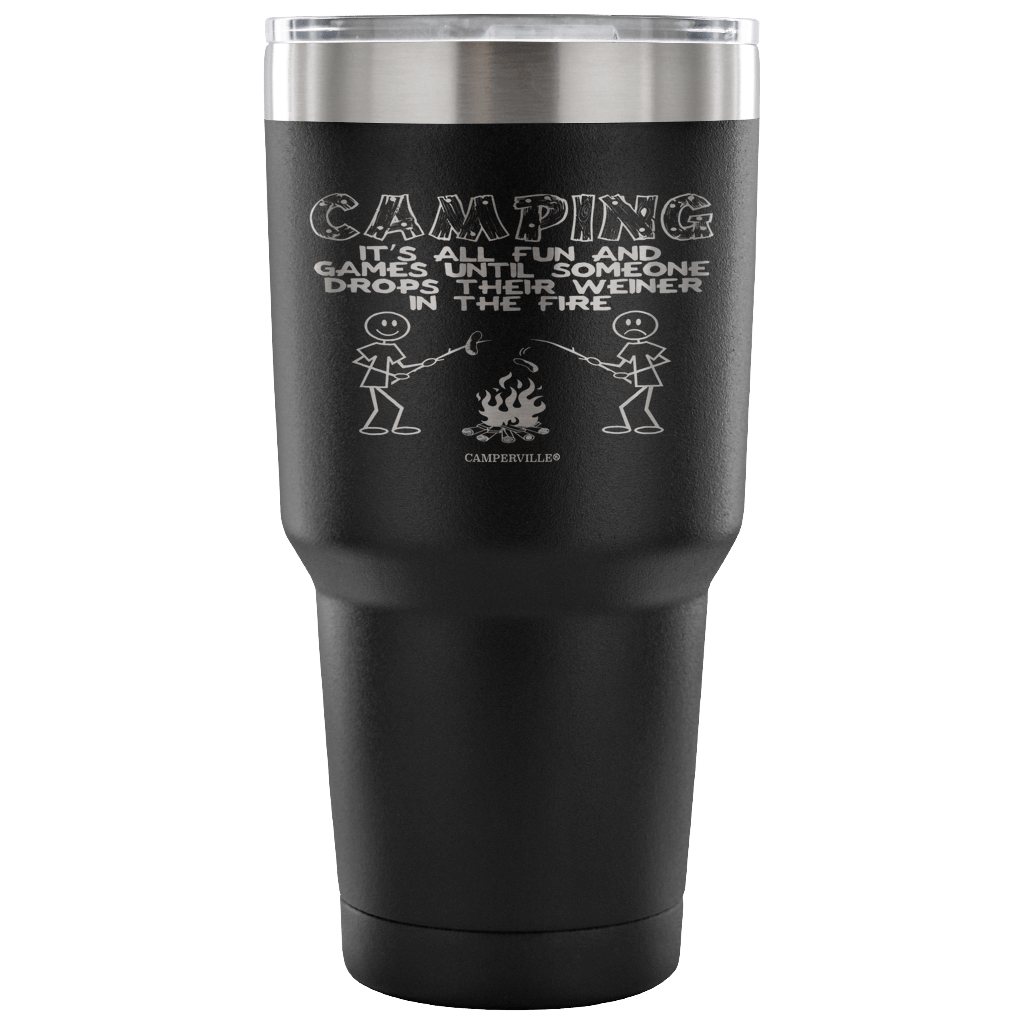 "Camping - It's All Fun And Games Until Someone Drops Their Weiner In The Fire" - Tumbler