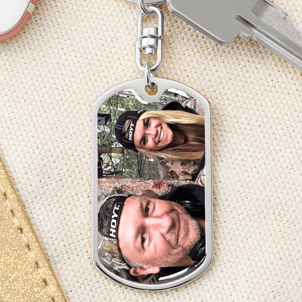 This Hunting Buddy Dog Tag Photo Keychain is the perfect keepsake! Whether for yourself or a loved one.