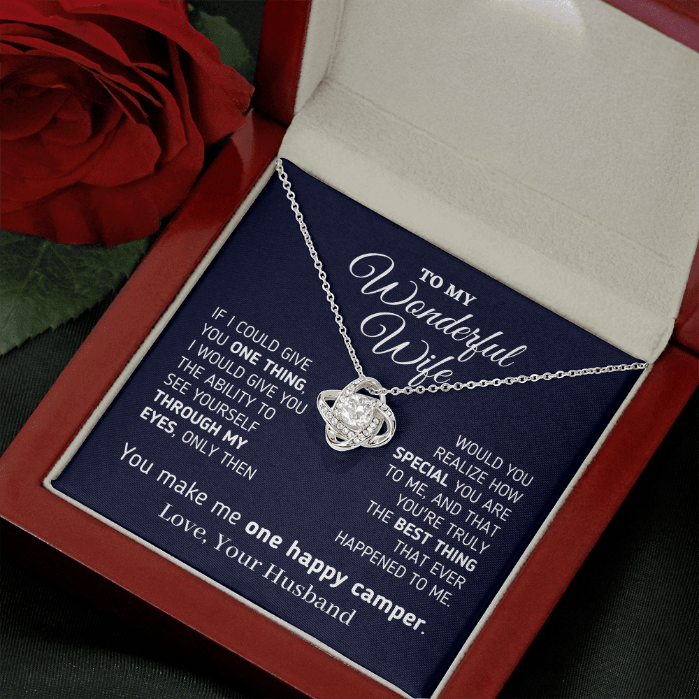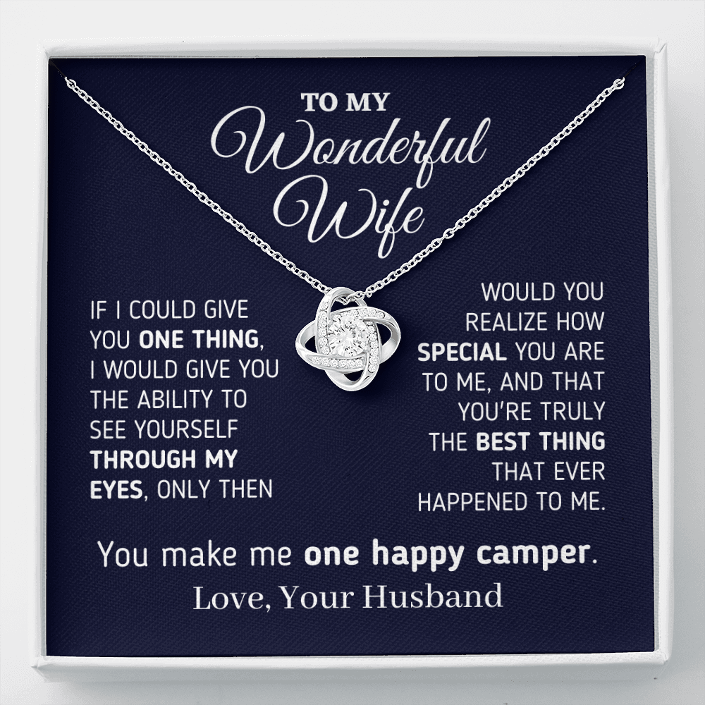 The Love Knot Necklace represents an unbreakable bond between two souls. This symbol of eternal love is a forever favorite and trending everywhere. Surprise your Wife with this gorgeous gift today!