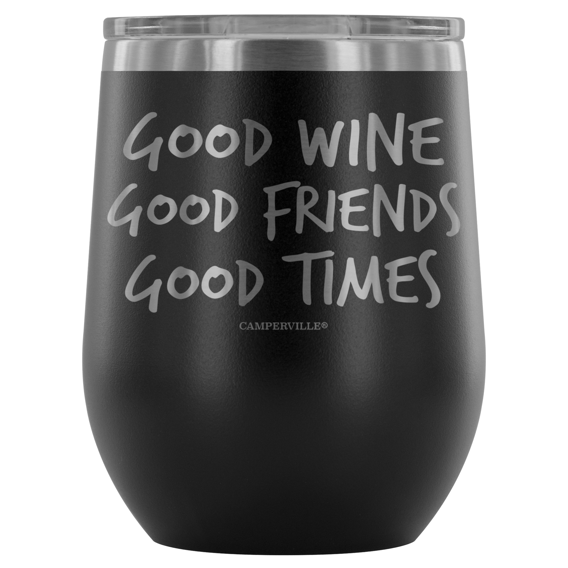 "Good Wine, Good Friends, Good Times" - Stemless Wine Cup