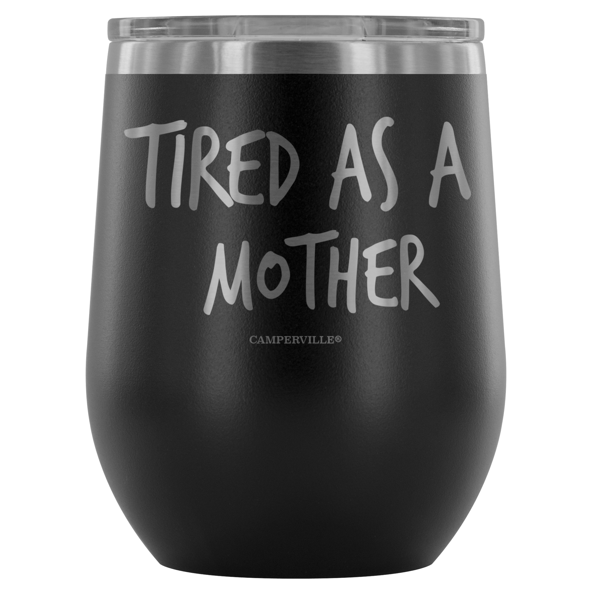 "Tired As A Mother" Stemless Wine Cup