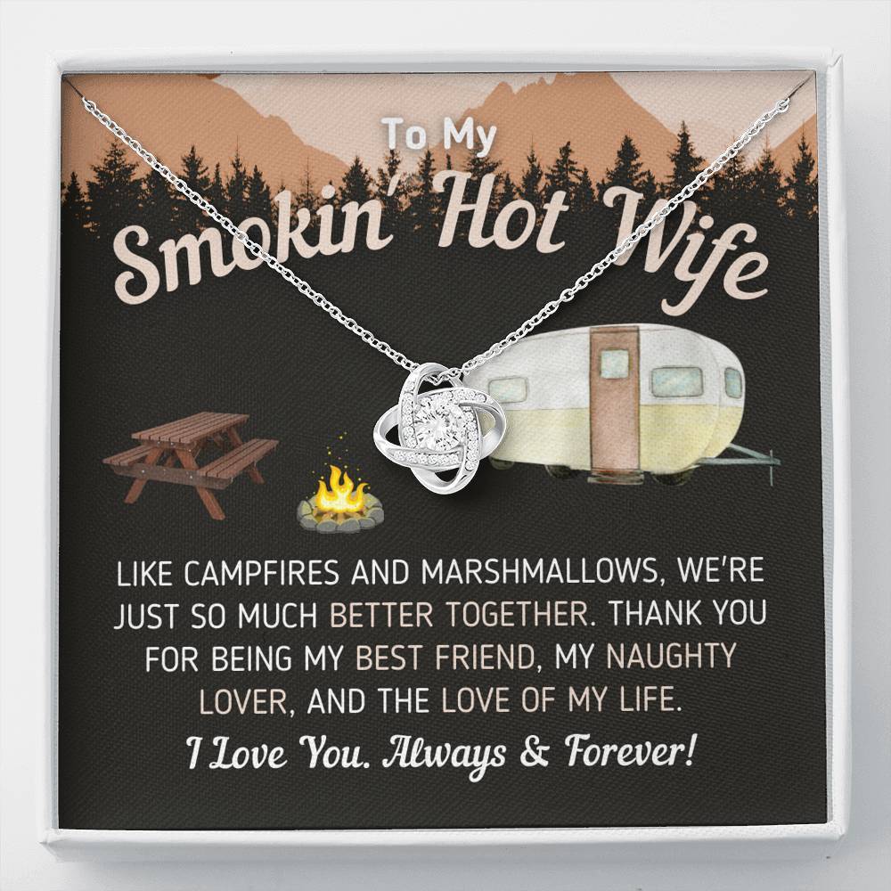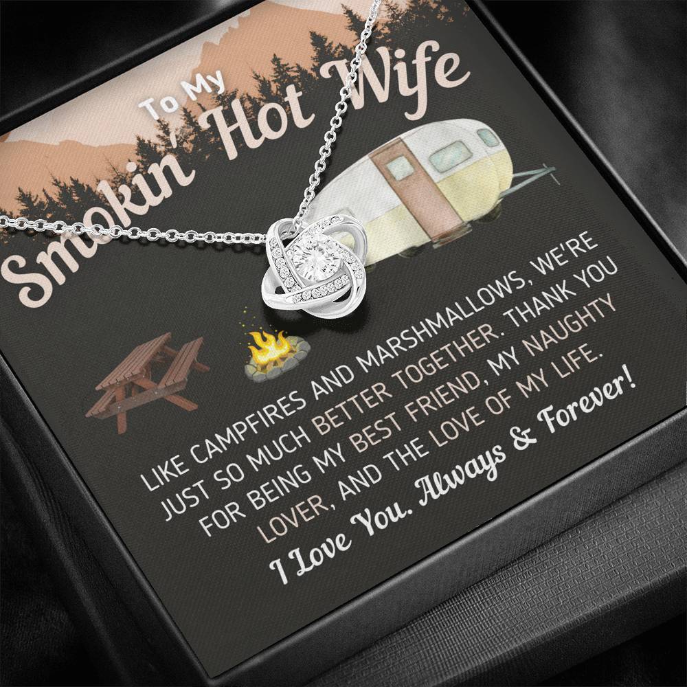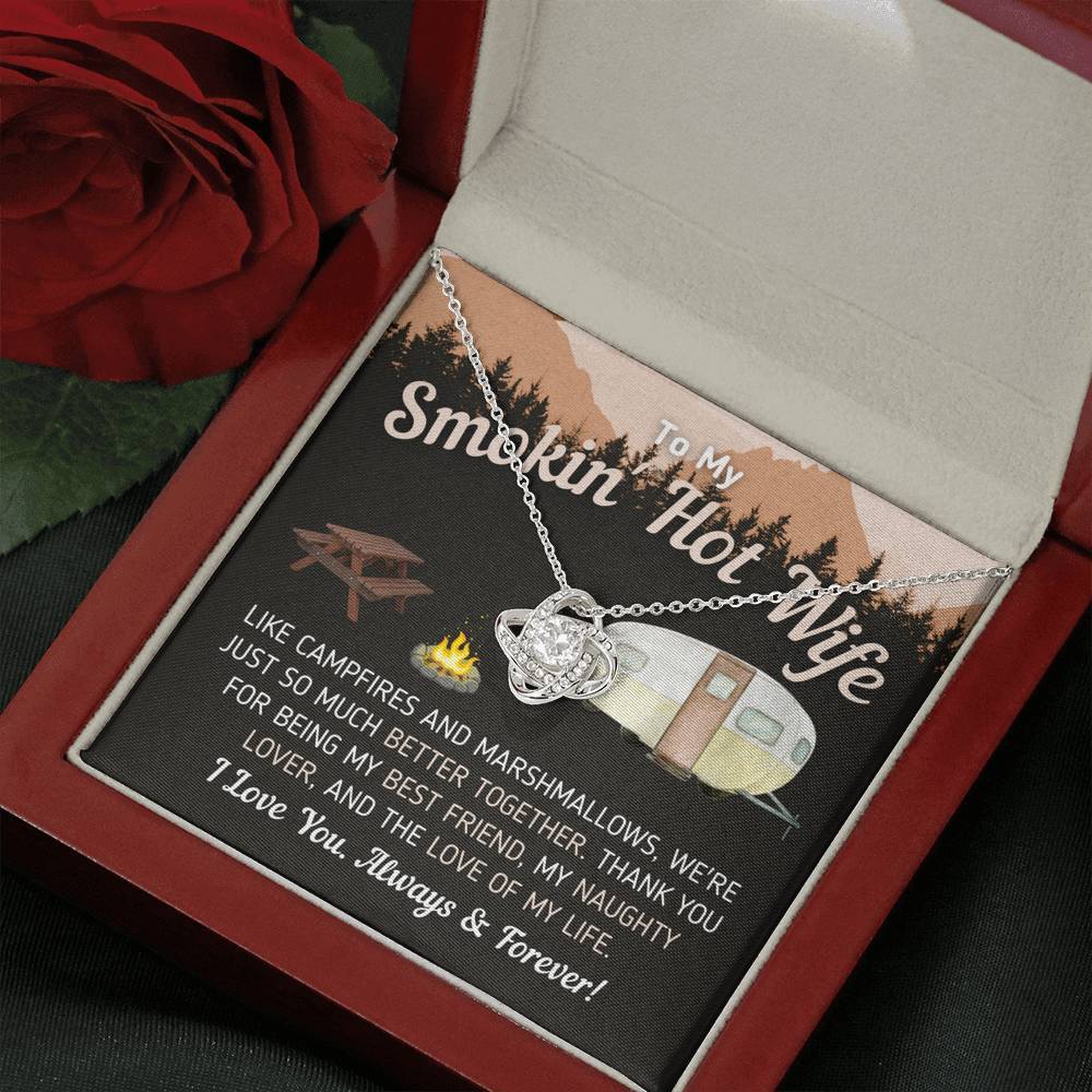"To My Smokin' Hot Wife - Like Campfires and Marshmallows" Camper Trailer Eternal Love Knot Necklace