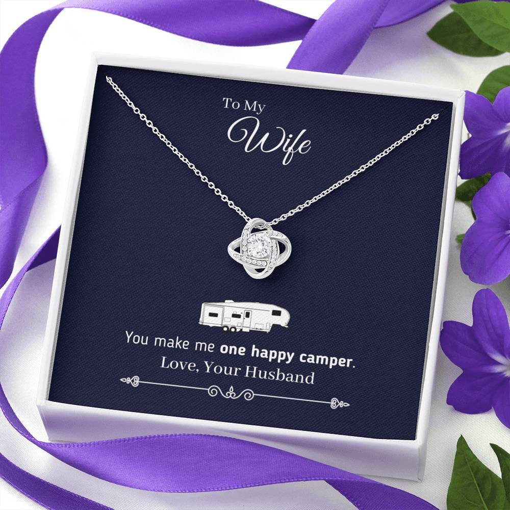 "To My Wife - You Make Me One Happy Camper" - Eternal Love Knot Necklace (Fifth Wheel Version)