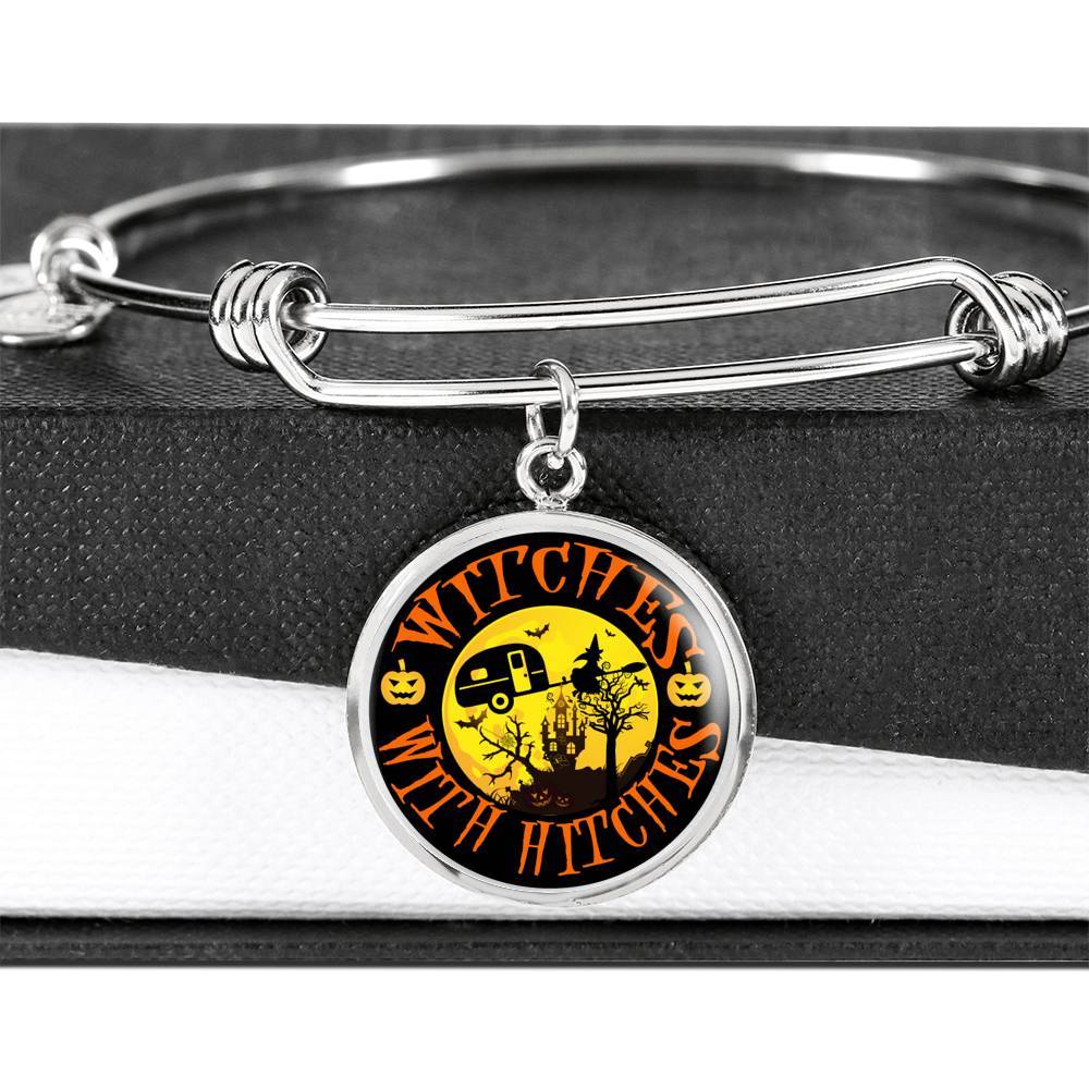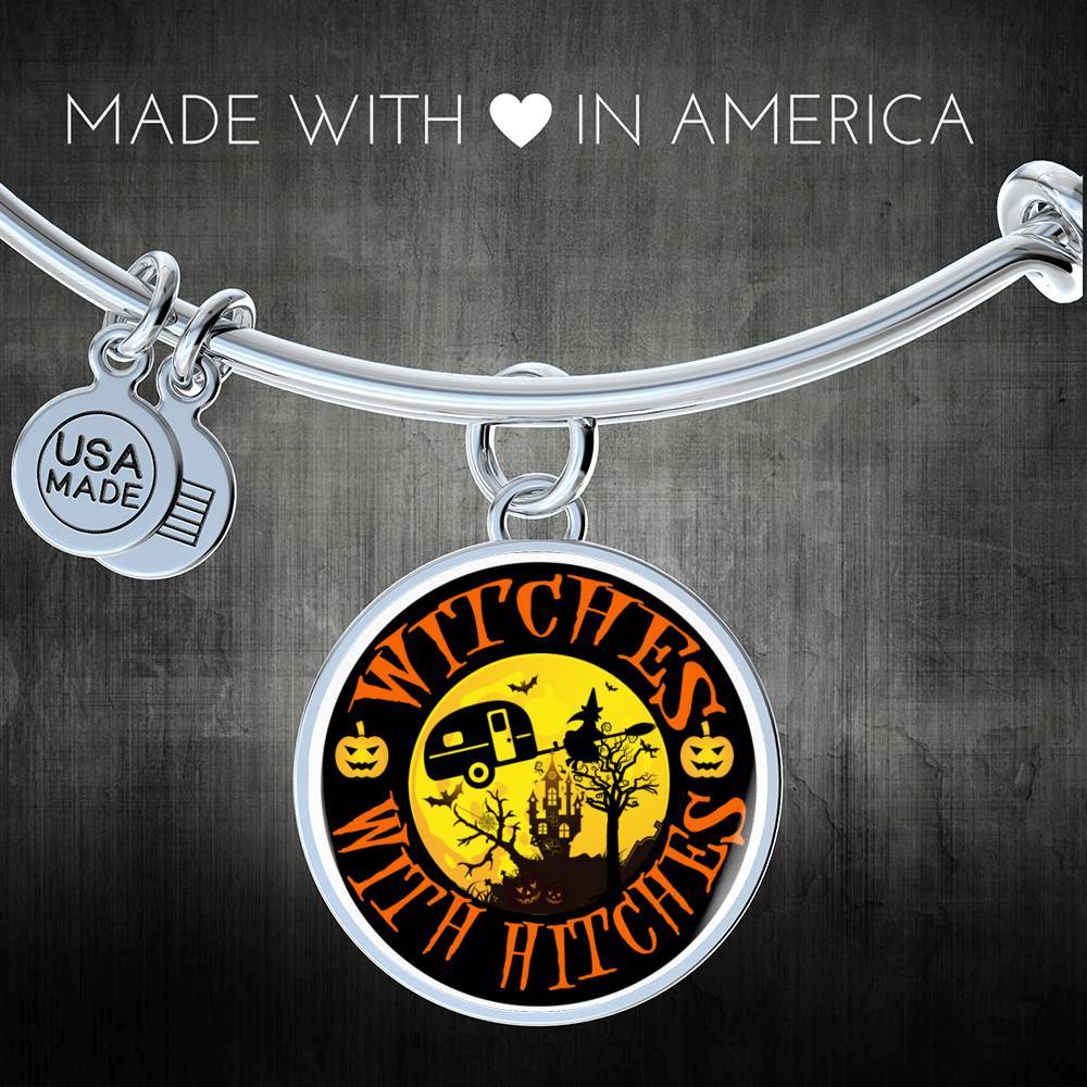 Funny "Witches With Hitches" Round Charm Halloween Bracelet